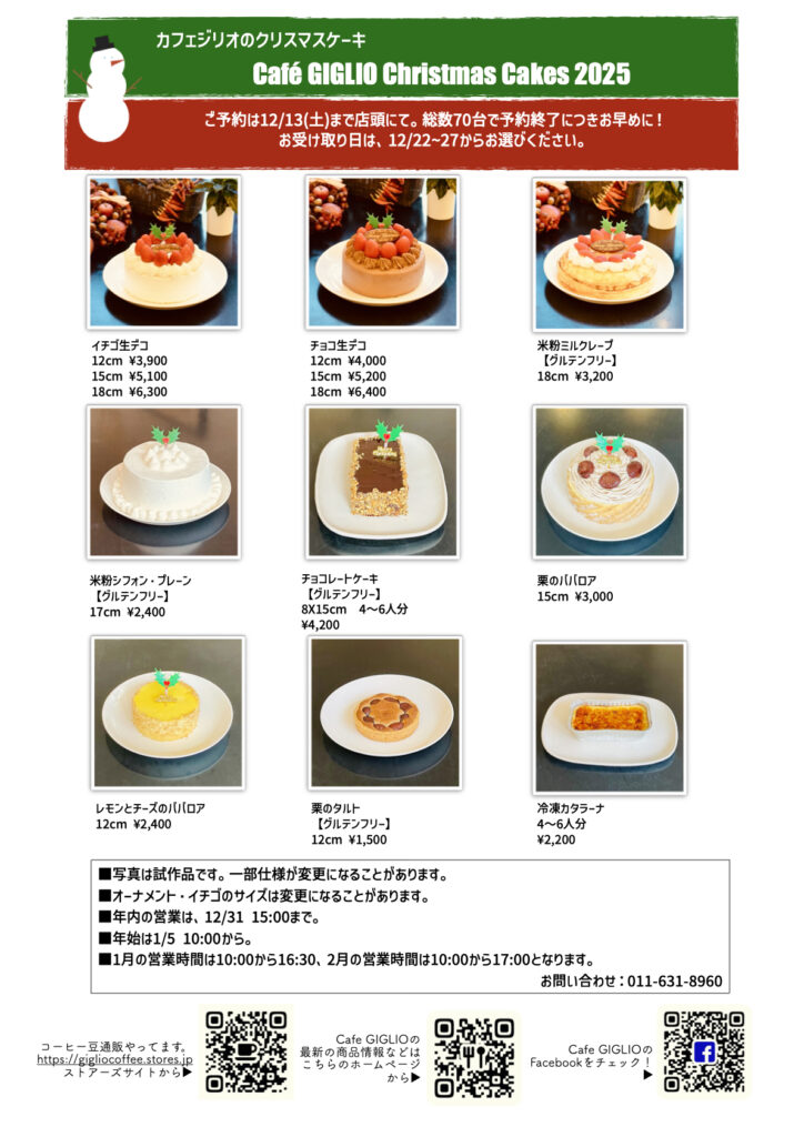 11月〜3月のホールケーキカタログ